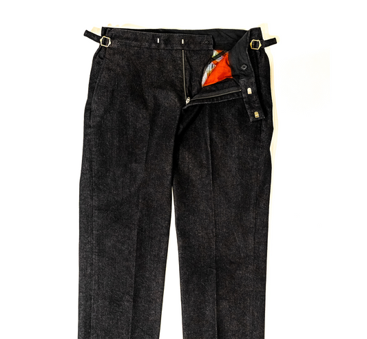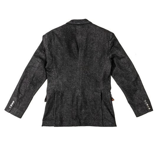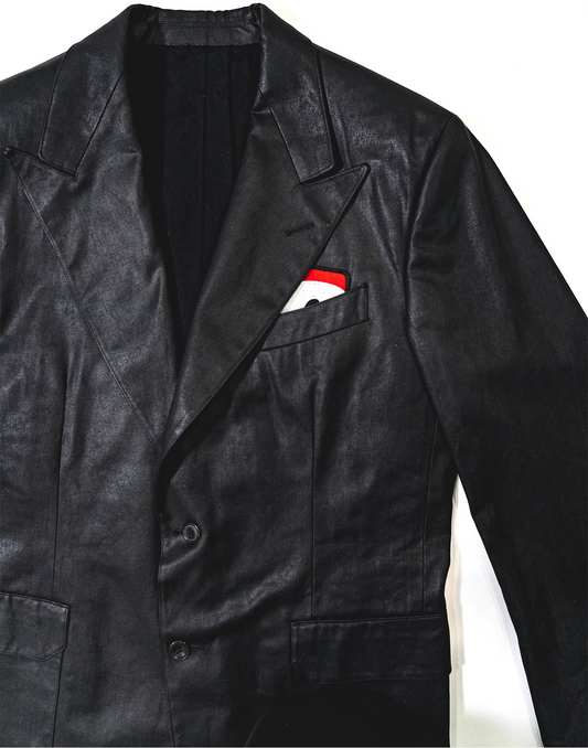 Black Denim Notch Collar Jacket With Custom African Lining.